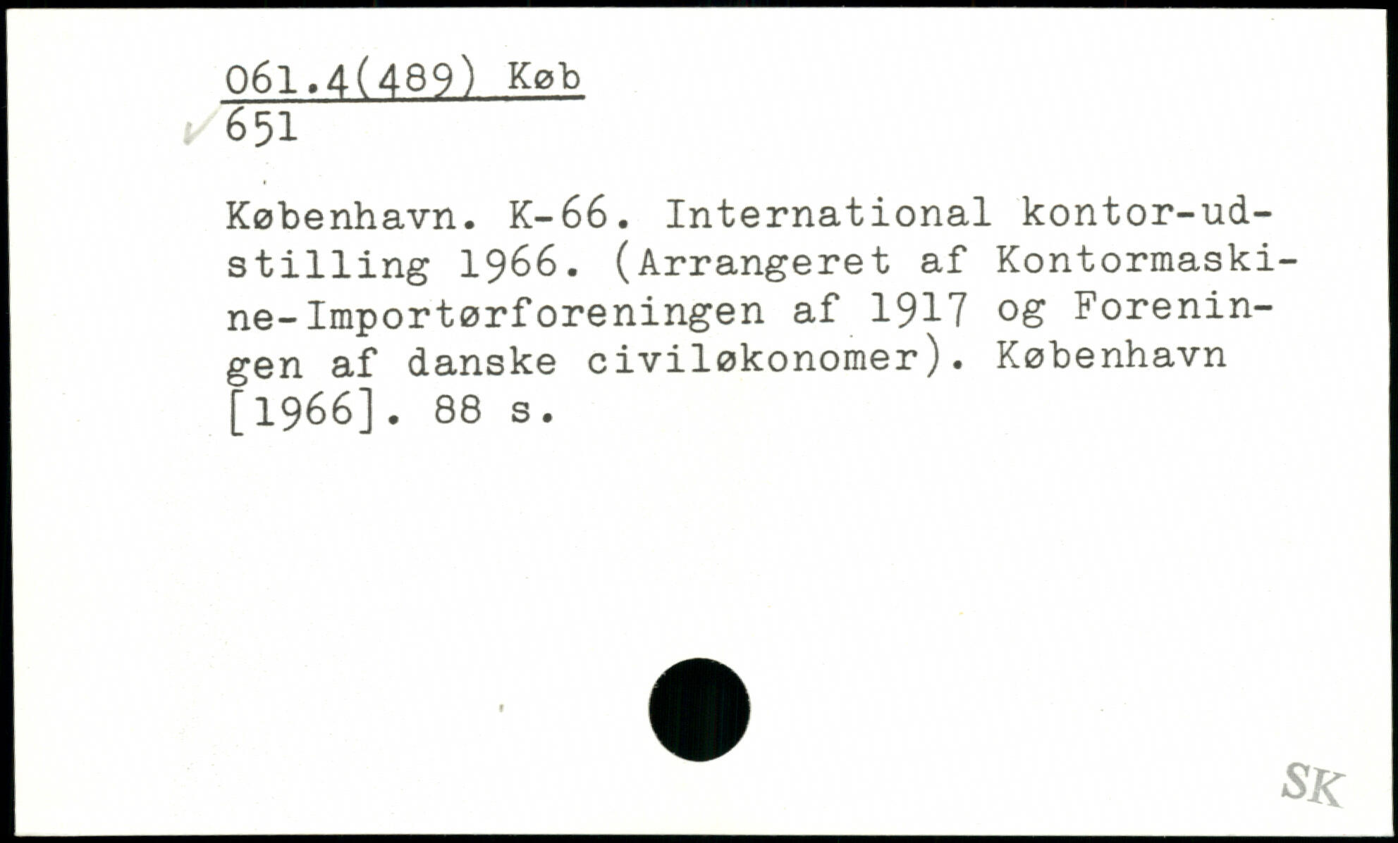 København. K-66. International kontor-udst1111ng 1966. (Arrangeret af Kontormaskine- Importørforeningen af 1917 og Foreningen af danske civiløkonomer).