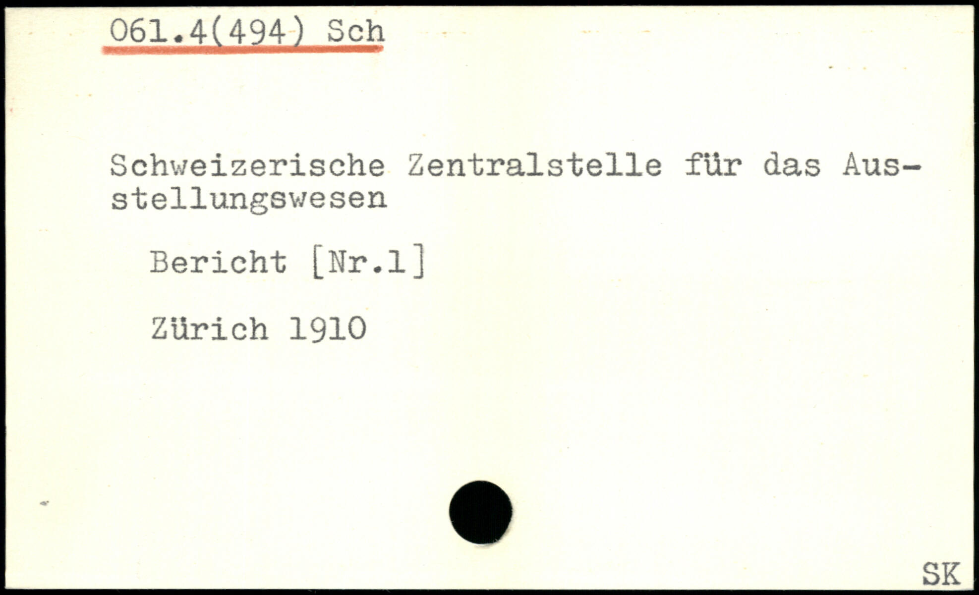 Schweizerische Zentralstelle für das Aus-stellungswesen Bericht [Nr.l] Zürich 1910