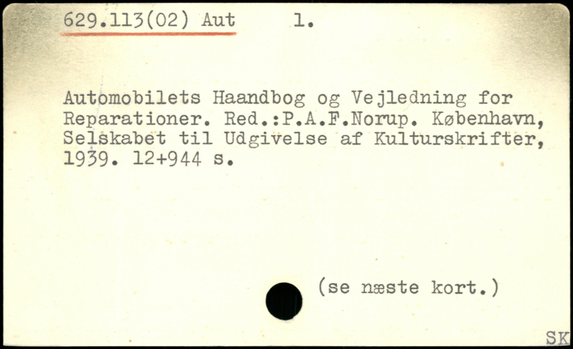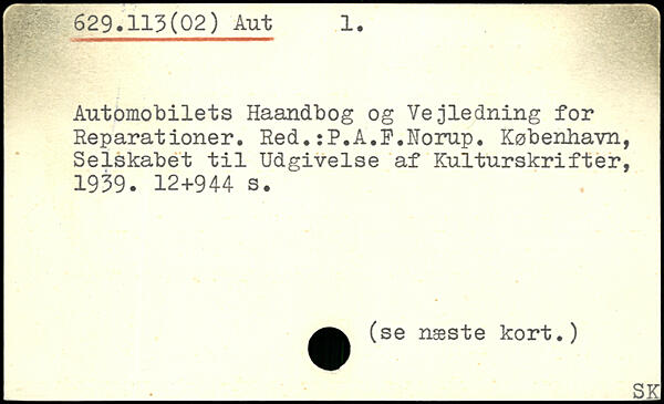 Automobilets Haandbog og Vejledning for Reparationer. Red.:P.A.F.Norup. København, Selskabet til Udgivelse af Kulturskrifter, 1939.