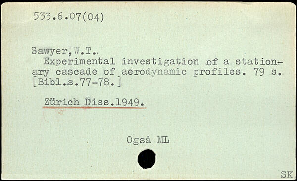 Experimental investigation .of a stationary cascade of aerodynamic profiles.