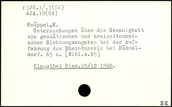 Untersuchungen über die Genauigkeit von geodätischen und kreiset technischen Richtungsangaben bei der Auffahrung des Rheintunnels bei Düsseldorf.