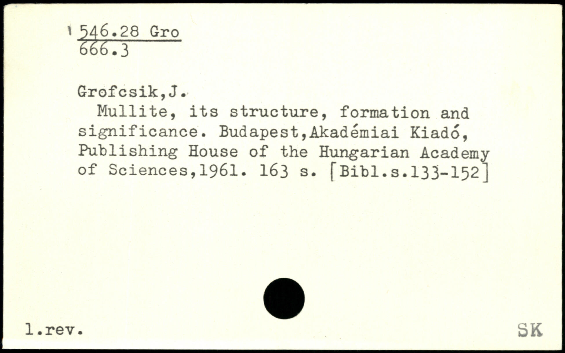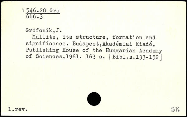 Mullite, its structure, formation and significance. Budapest,Akademiai Kiado, Publishing House of the Hungarian Academy of Sciences,1961. I