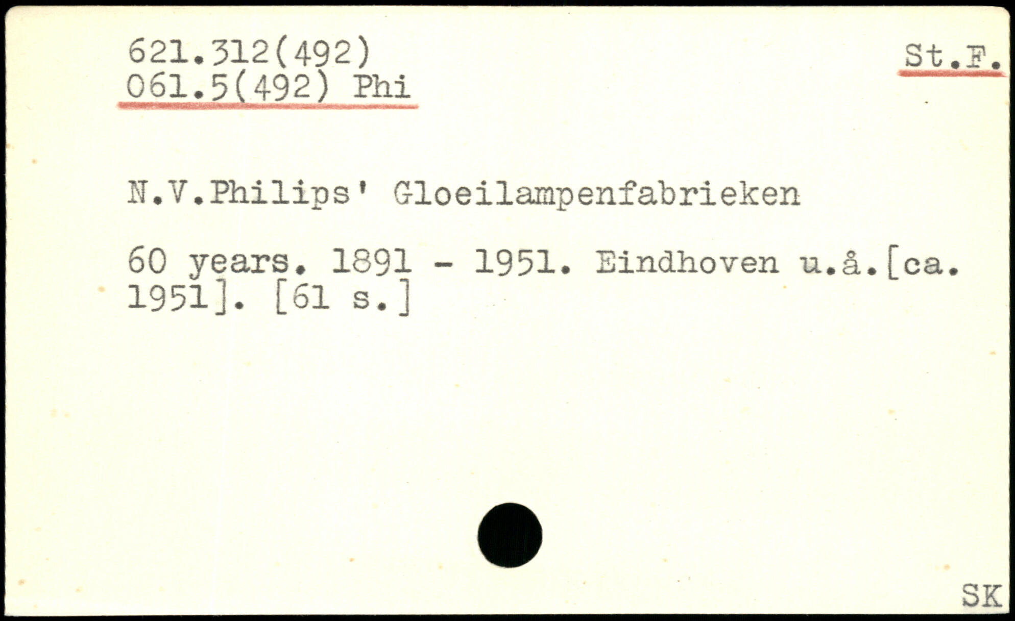H.V.Philips' Gloeilampenfabrieken 60 years. 1891 - 1951. Eindhoven u.&.[oa. 1951]. [