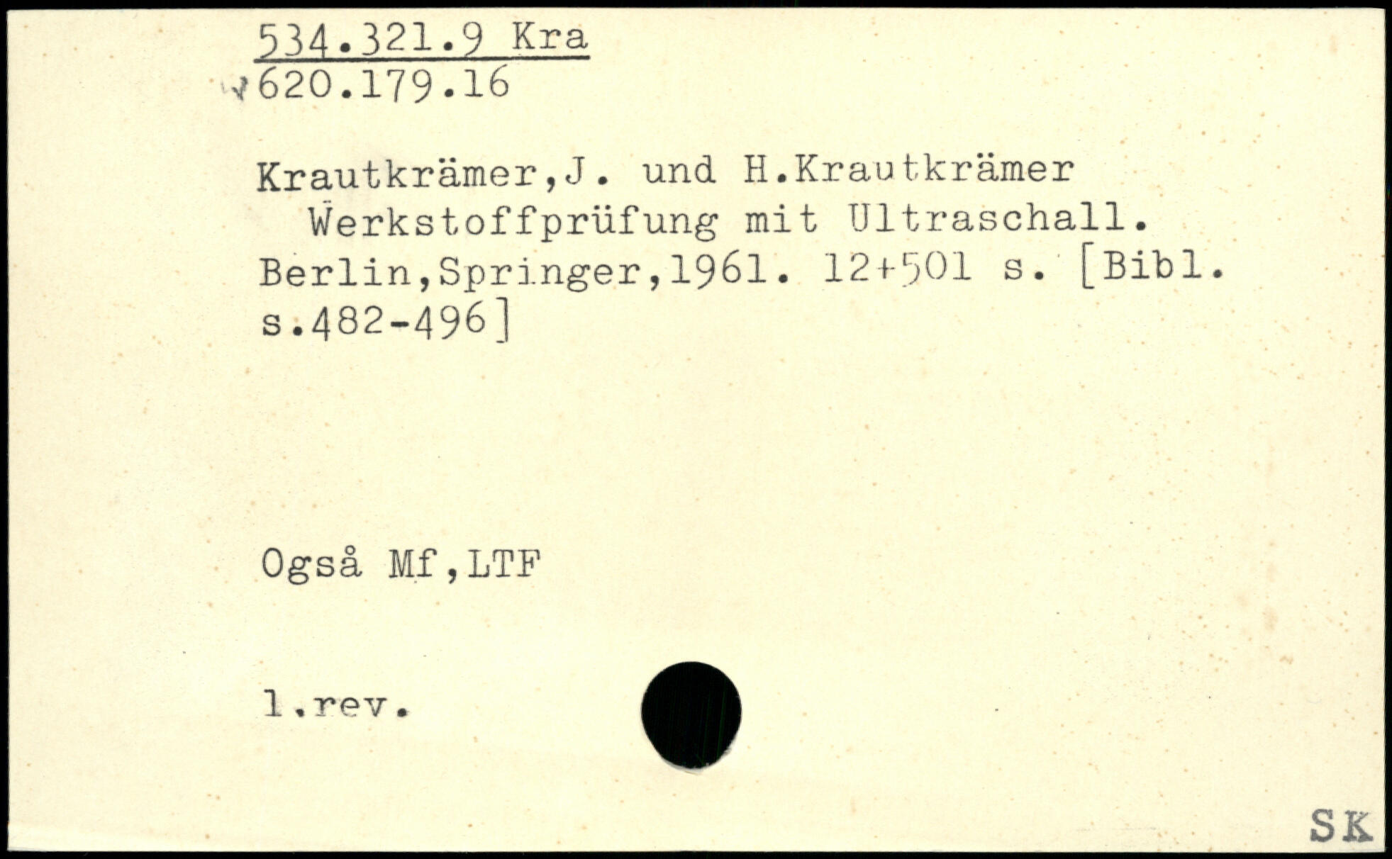 Krautkrämer,J. und H.Krautkrämer Werkstoffprüfung mit Ultraschall.