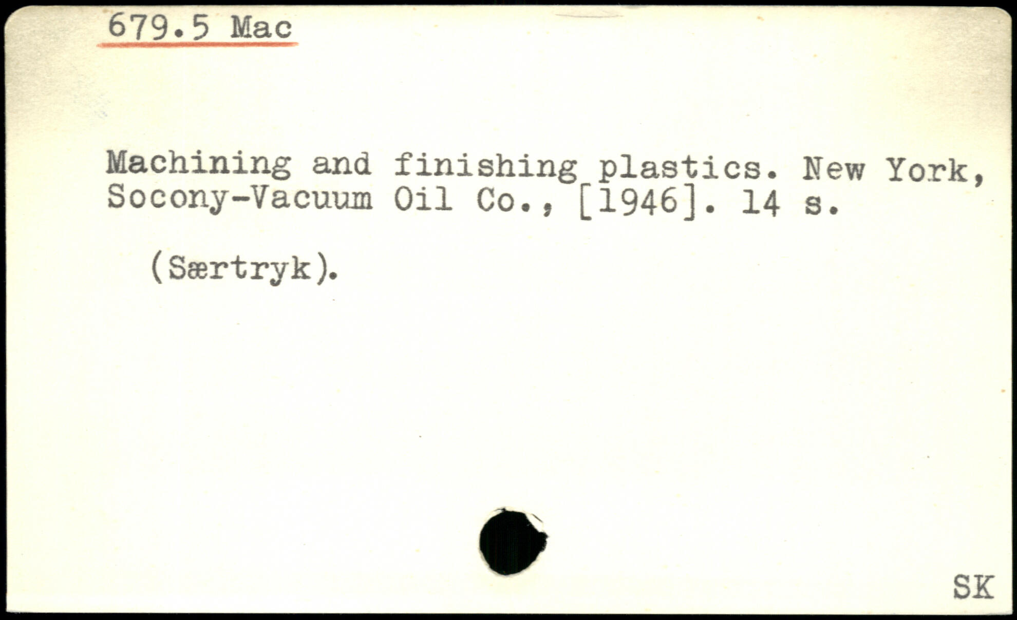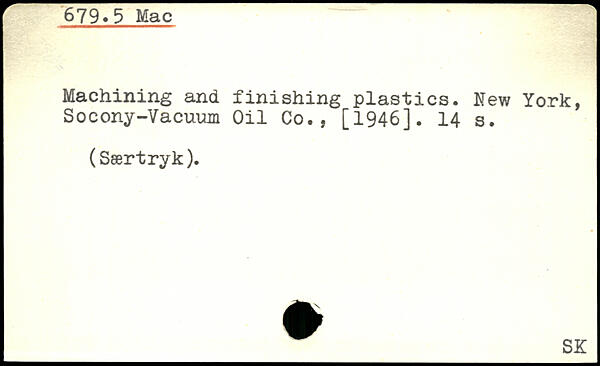 Machining and finishing plastics. New York, Socony-Vacuum Oil Co.