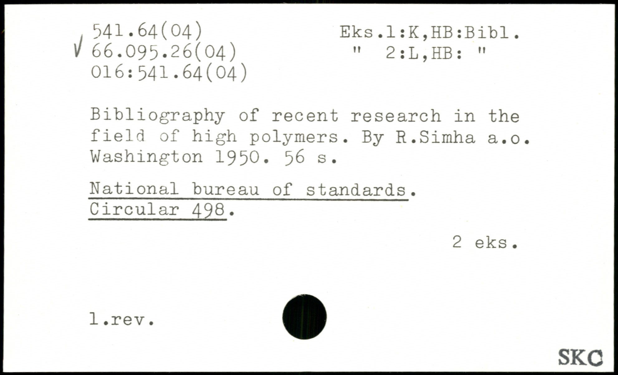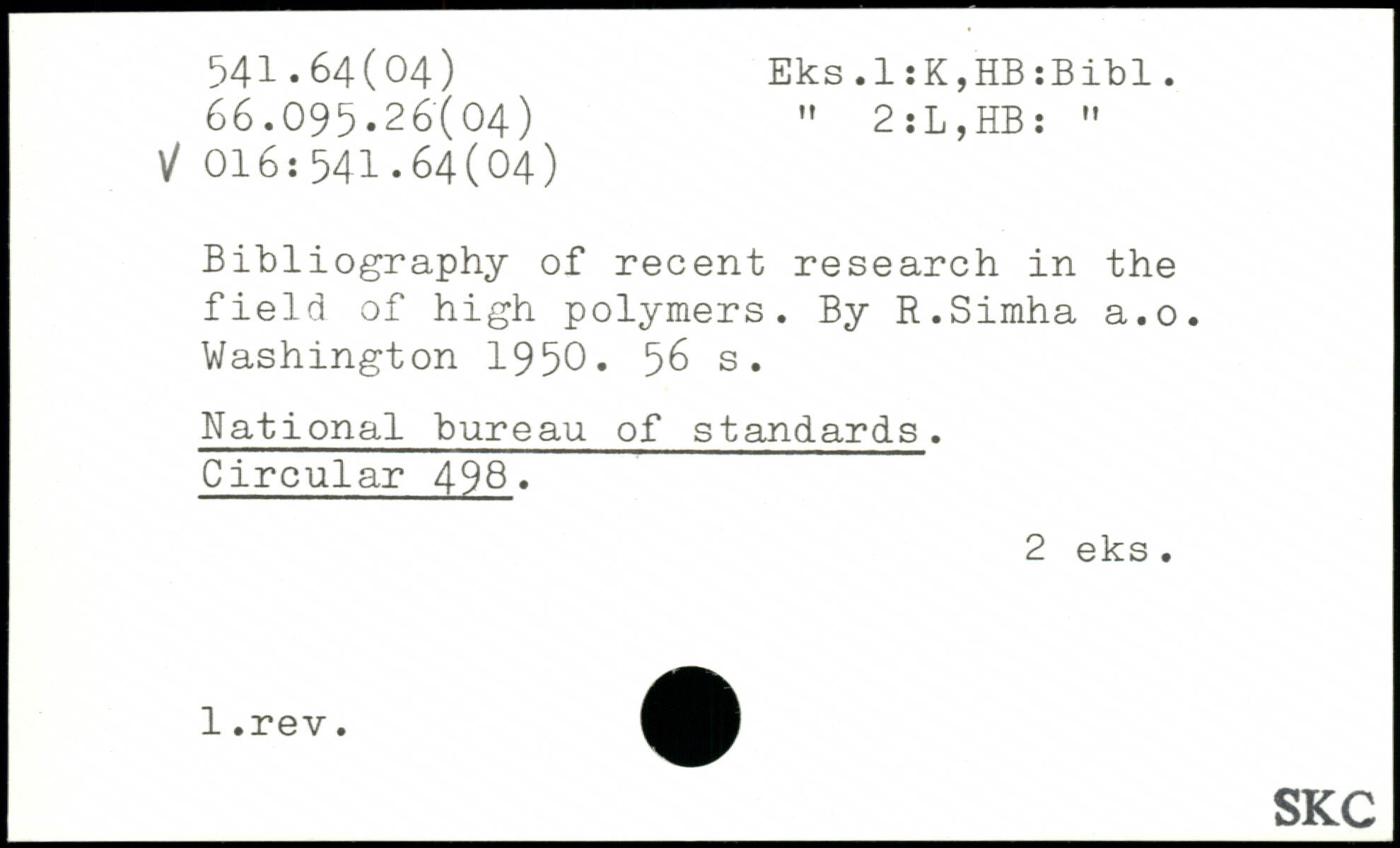 Bibliography of recent research in the field of high polymers. By R.Simha a.o.