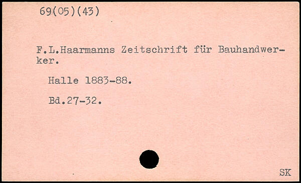 F.L.Haarmanns Zeitschrift für Bauhandwerker, Halle 1883-88.
