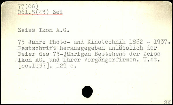 anlässlich der Peier des 75-jährigen Bestehens der Zeiss Ikon AG. und ihrer Vorgängerfirmen. U.st.
