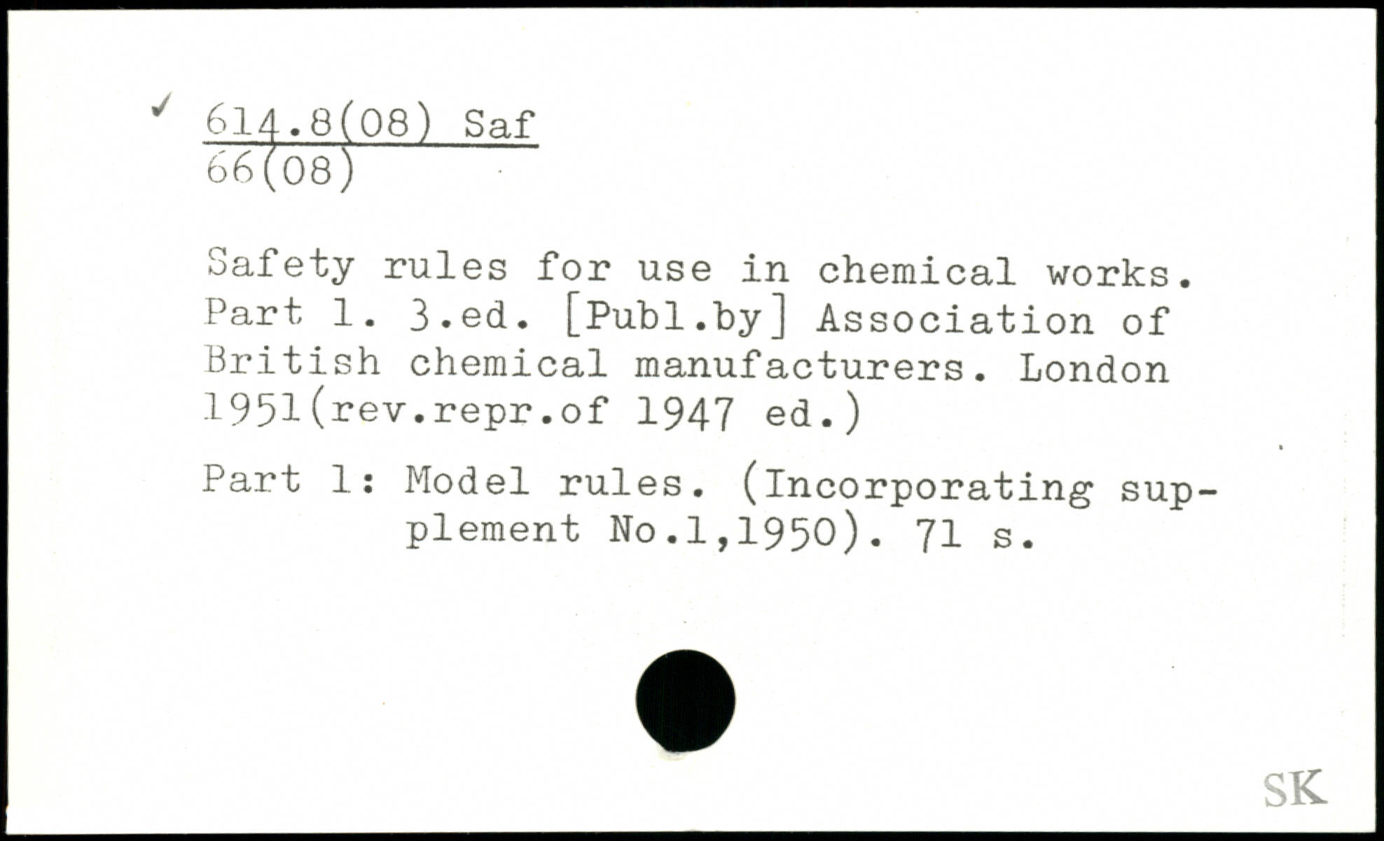 Safety rules for use in chemical works. Part 1.