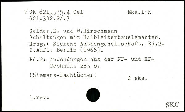 Gelder,E. und W.Hirschmann Schaltungen mit Halbleiterbauelementen. Hrsg.: Siemens Aktiengesellschaft.