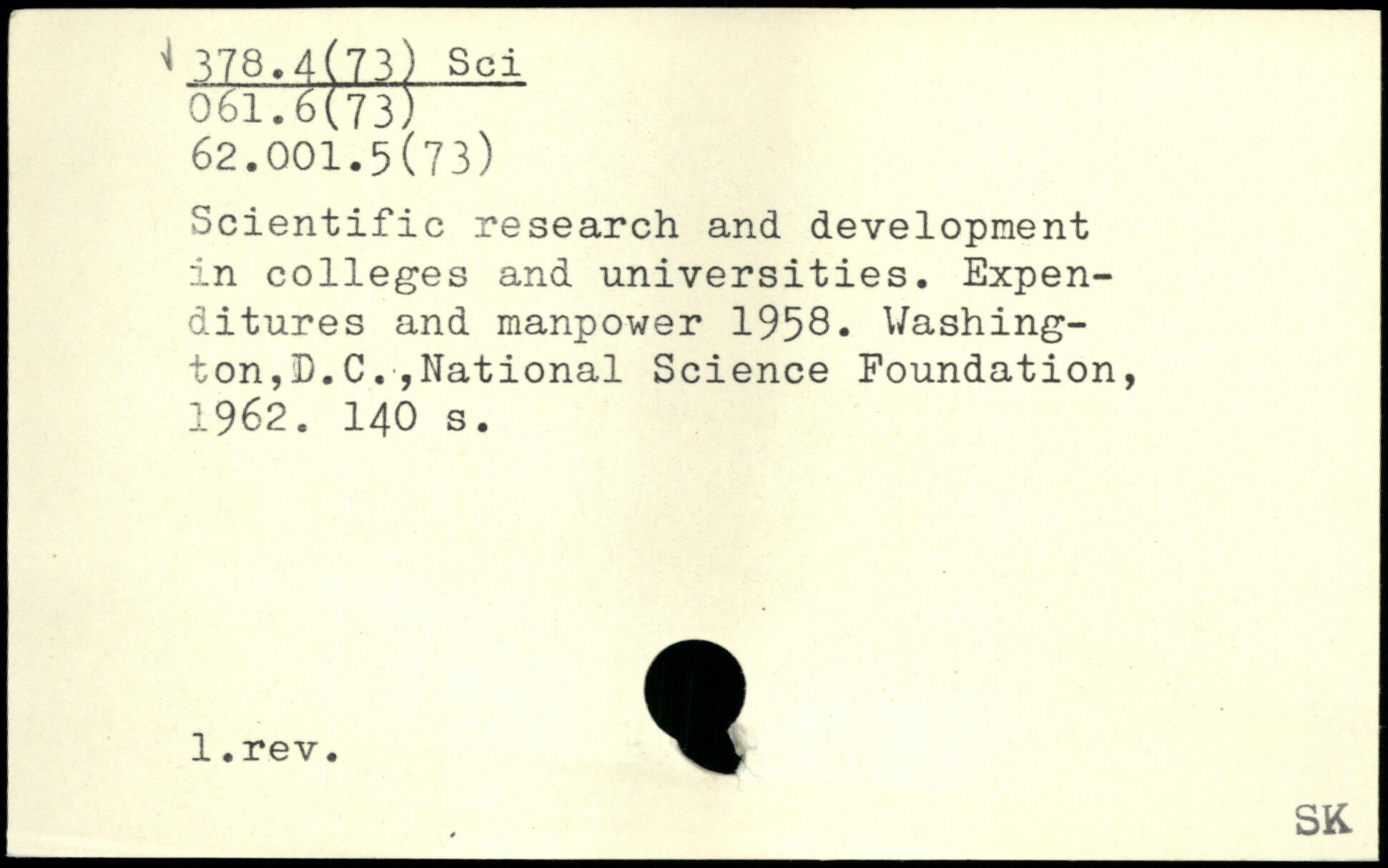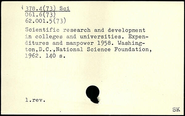 Scientific research and development in colleges and universities. Expenditures and manpower 1958