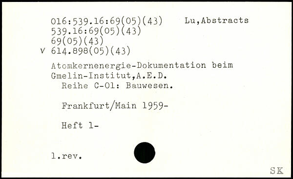 Atomkernenergie-Dokumentation beim Gmelin-InstitutrA.E.D. Reihe C-01: Bauwesen. Frankfurt/Main 1959- Heft 1-