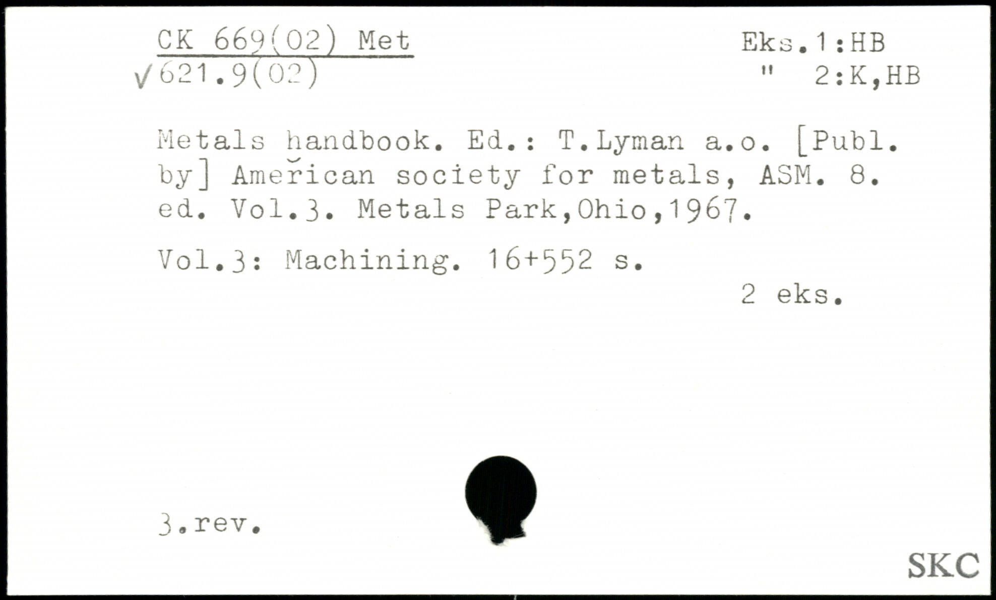 UDK: 669(02) Met, 621.9, 2