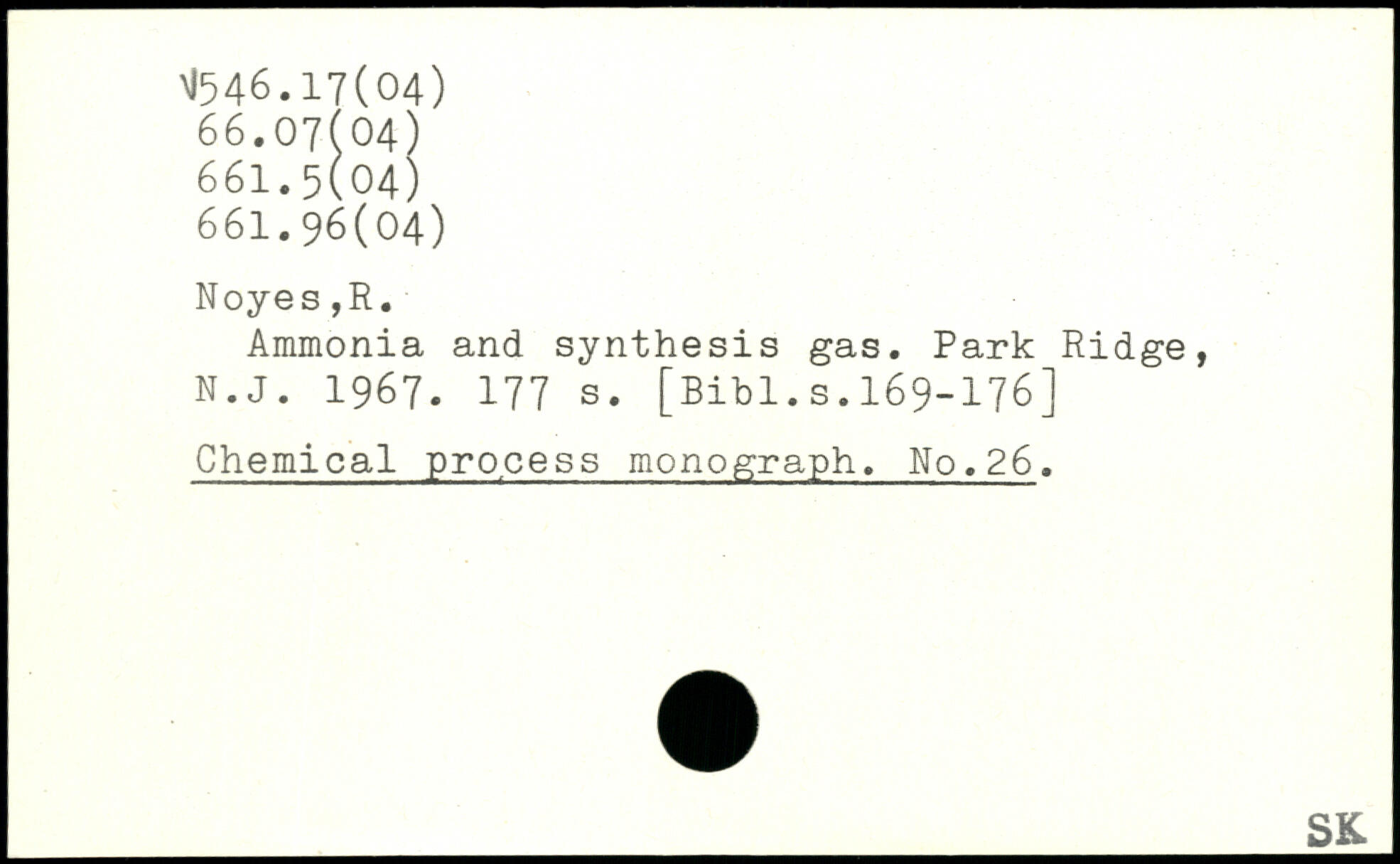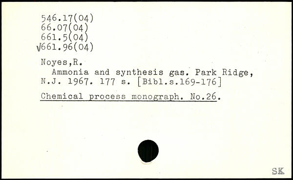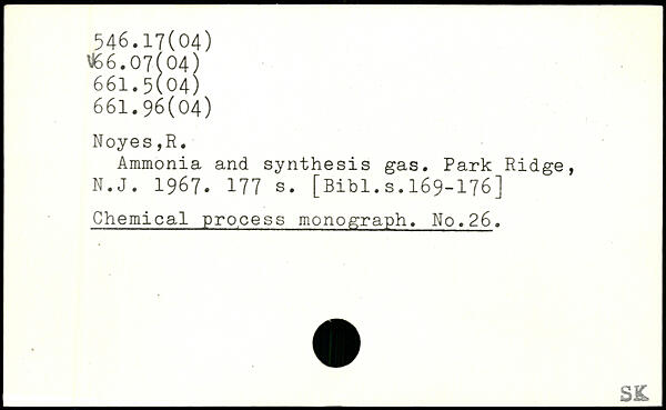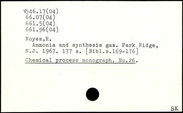 Ammonia and synthesis gas. Park Ridge, N.J. 1967.