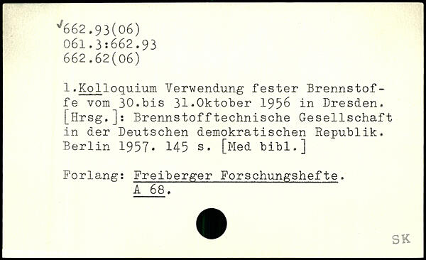 1.Kolloquium Verwendung fester Brennstoffe vom 30.bis 31,0ktober 1956 in Dresden. [Hrsg.]: Brennstofftechnische Gesellschaft in der Deutschen demokratischen Republik.