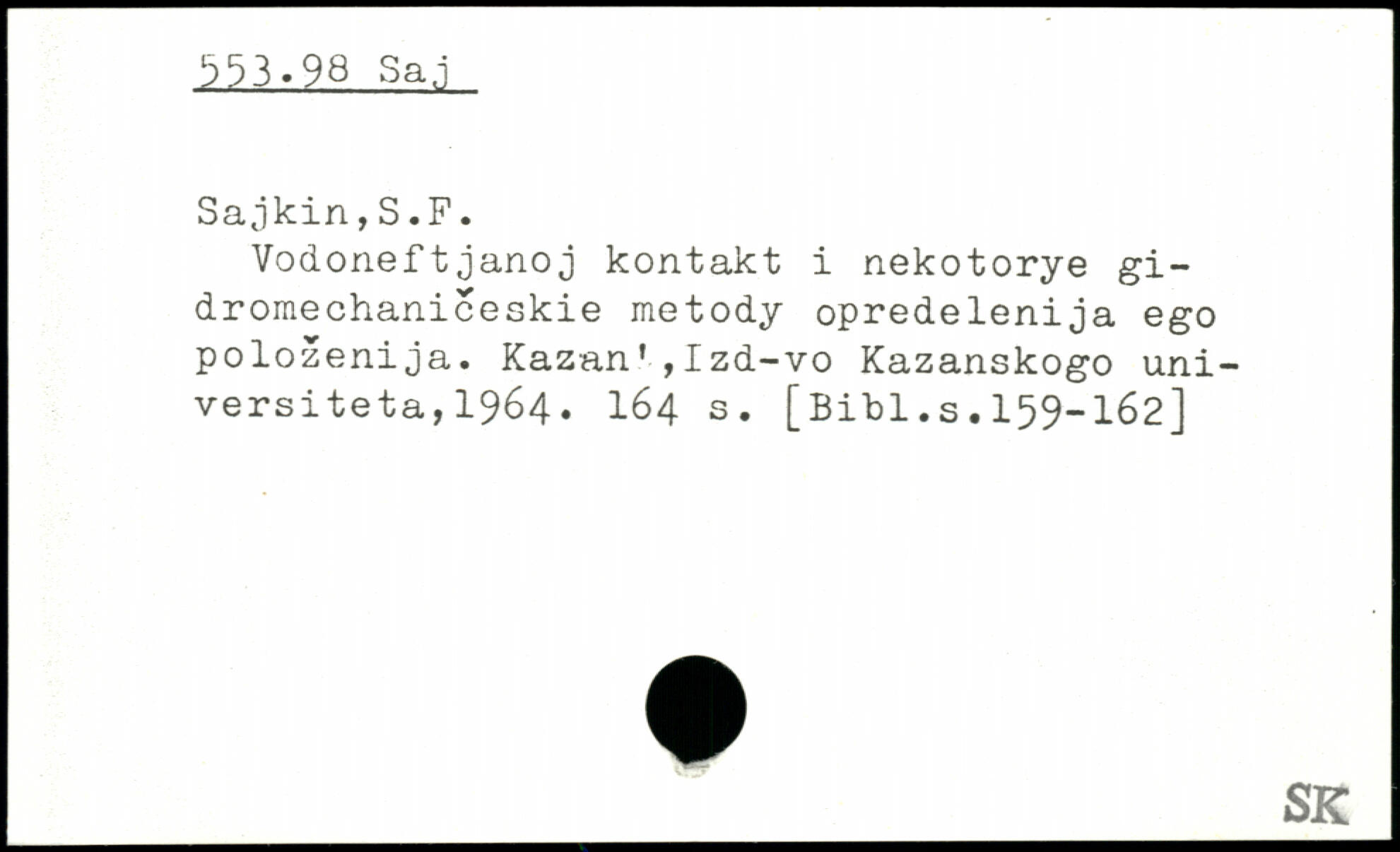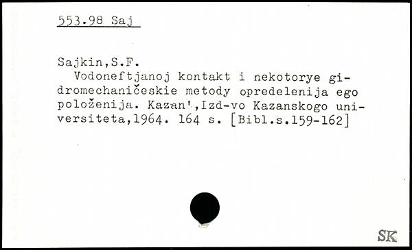Vodoneftjanoj kontakt i nekotorye gi-dromechaniceskie metody opredelenija ego polozenija. Kazan1,Izd-vo Kazanskogo uni-versiteta,1964. I
