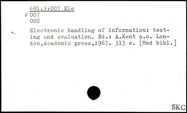 v Electronic handling of information: testing and evaluation. Ed.: A.Kent a.o.