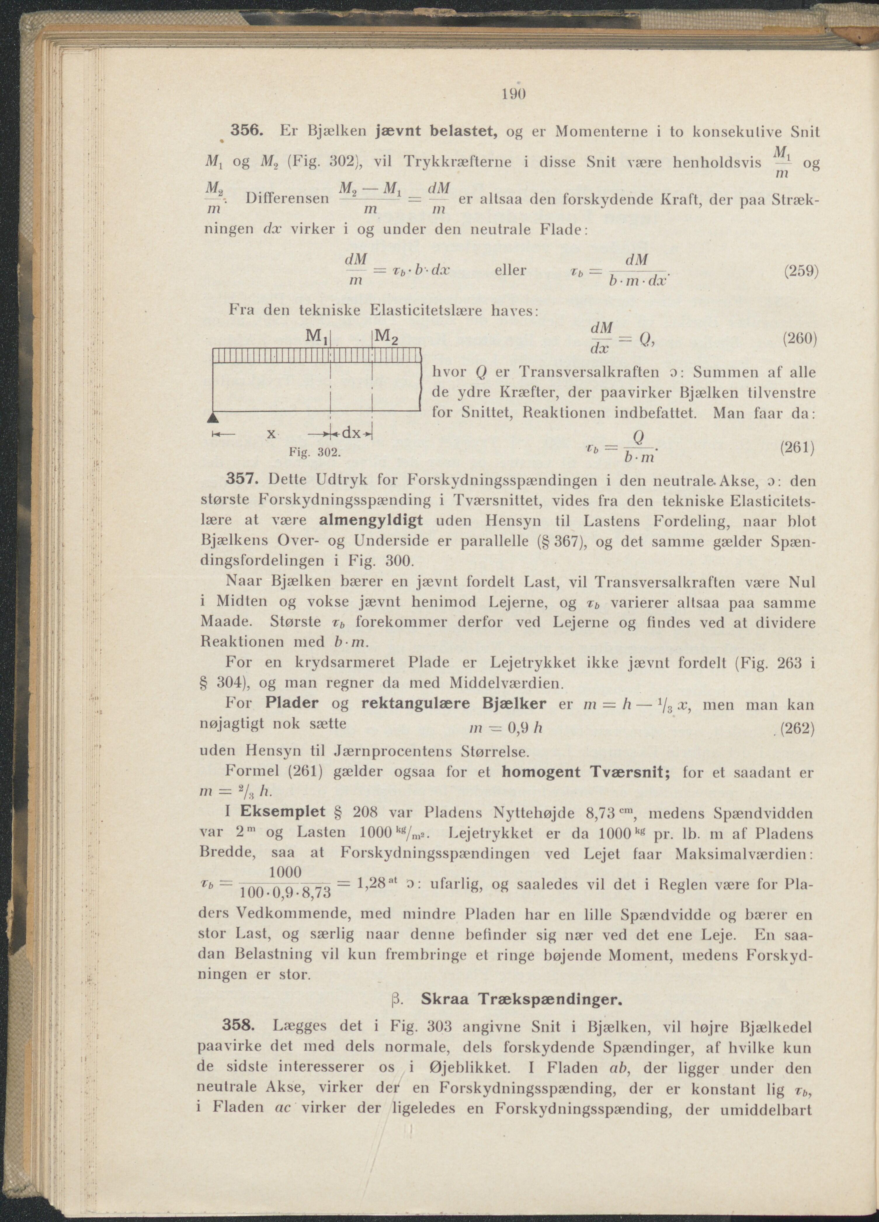 358. Lægges det i Fig. 303 angivne Snit i Bjælken, vil højre Bjælkedel