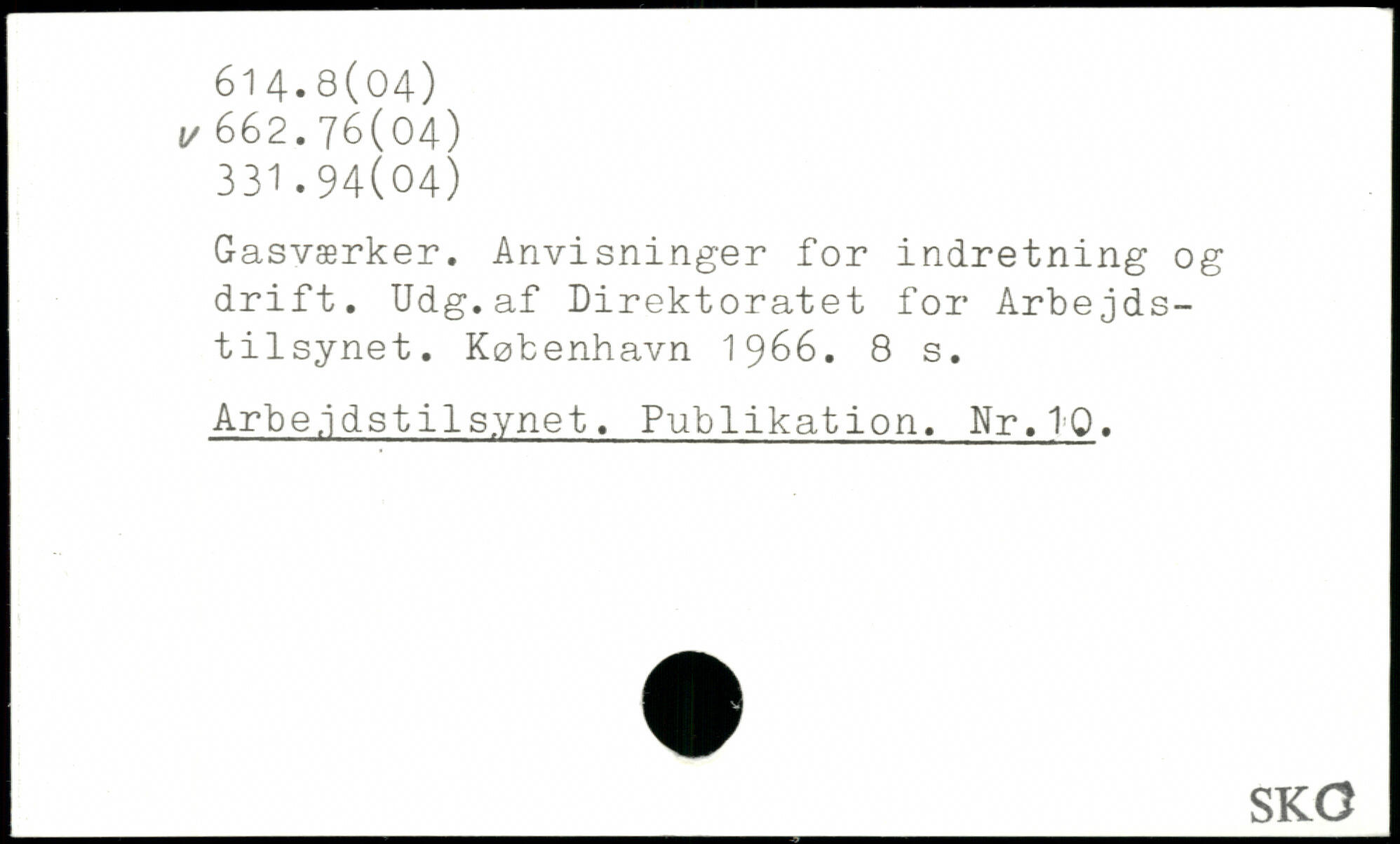Gasværker. Anvisninger for indretning og drift. Udg.af Direktoratet for Arbejdstilsynet.