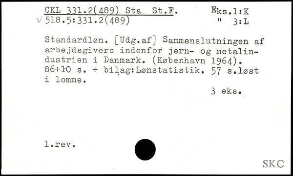 Standardløn. [Udg.af] Sammenslutningen af arbejdsgivere indenfor jern- og metalindustrien i Danmark. (