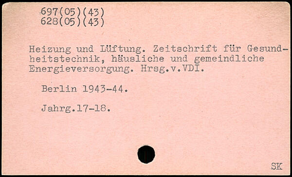 Heizung und Lüftung. Zeitschrift für Gesundheitstechnik, häusliche und gemeindliche Energieversorgung. Hrsg.v.VDI.