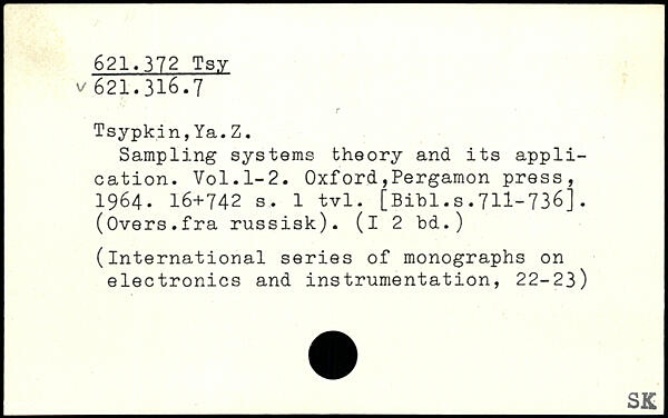 Tsypkin,Ya.Z. Sampling systems theory and its application.