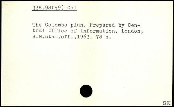 The Colombo plan. Prepared by Central Office of Information. London, H.M.stat.off.,1963.
