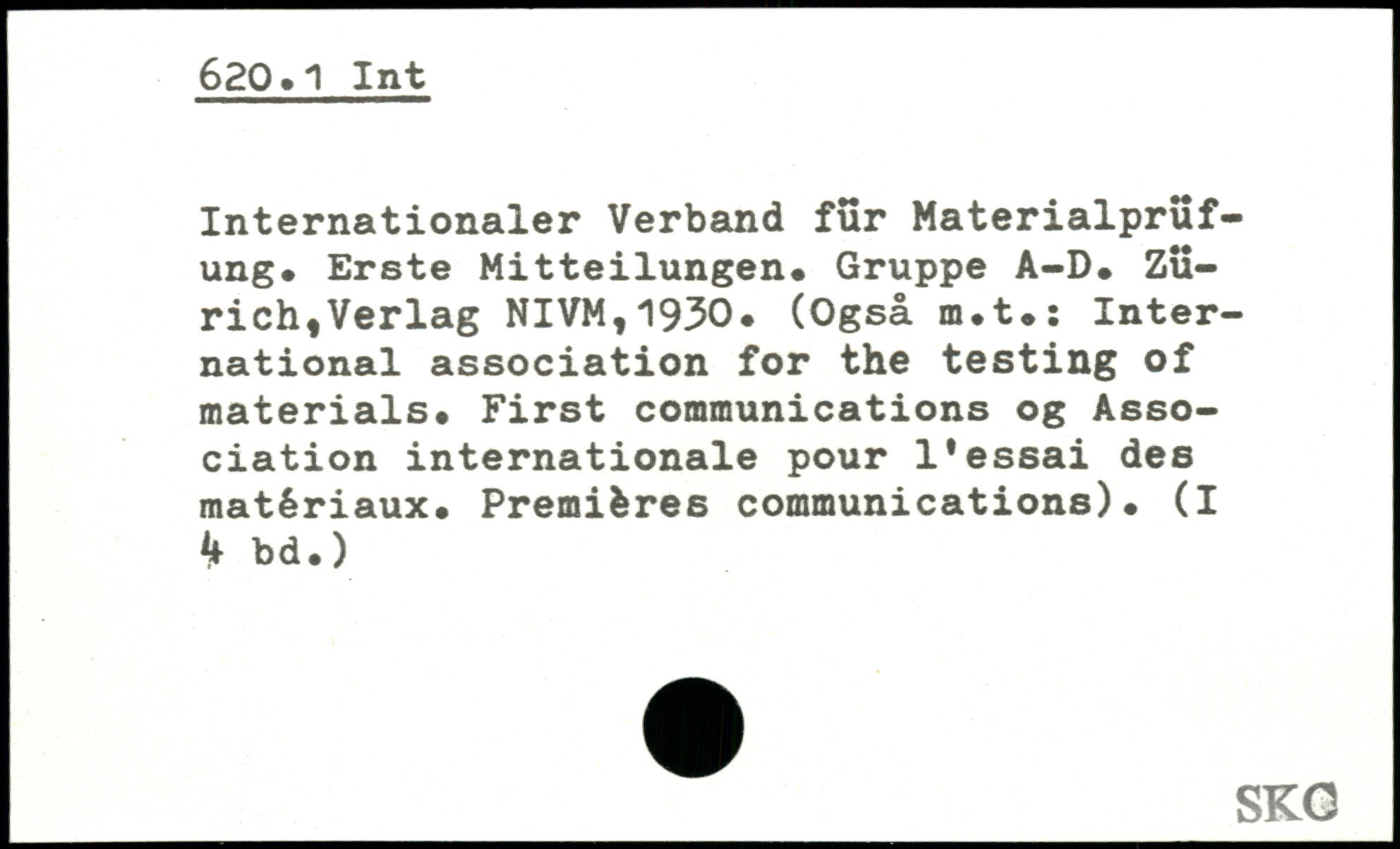 Internationaler Verband fur Materialprüfung. Erste Mitteilungen. Gruppe A-D.
