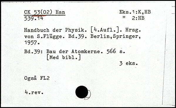 Handbuch der Physik. [.f.Aufl.]. Hrsg, von S.Flügge.