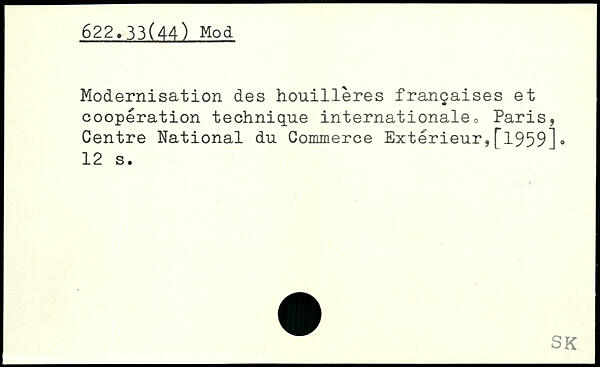 Modernisation des houillères françaises et coopération technique internationale , Paris, Centre National du Commerce Extérieur,[1959].
