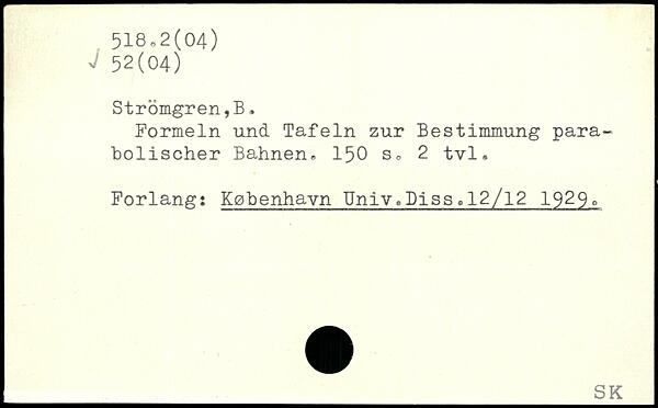Formeln und Tafeln zur Bestimmung parabolischer Bahnen