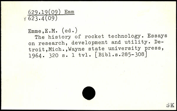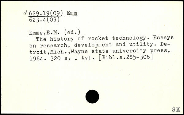 The history of rocket technology. Essays on research, development and utility. Detroit ,Mich .,Wayne state university press, 1964.