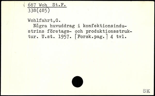 Några huvuddrag i konfektionsindustrins företags- och produktionsstruktur. U.st. 1957, [Forsk.pag.] 4 tvl.