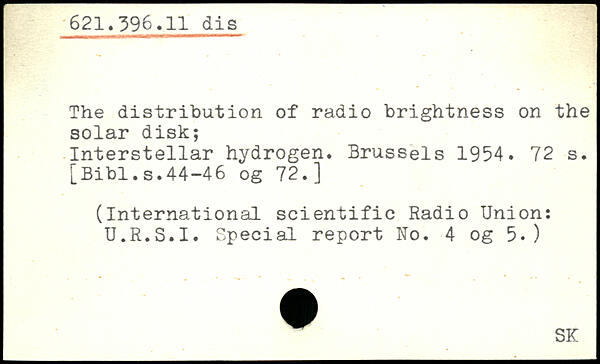 The distribution of radio brightness on the solar disk; Interstellar hydrogen.