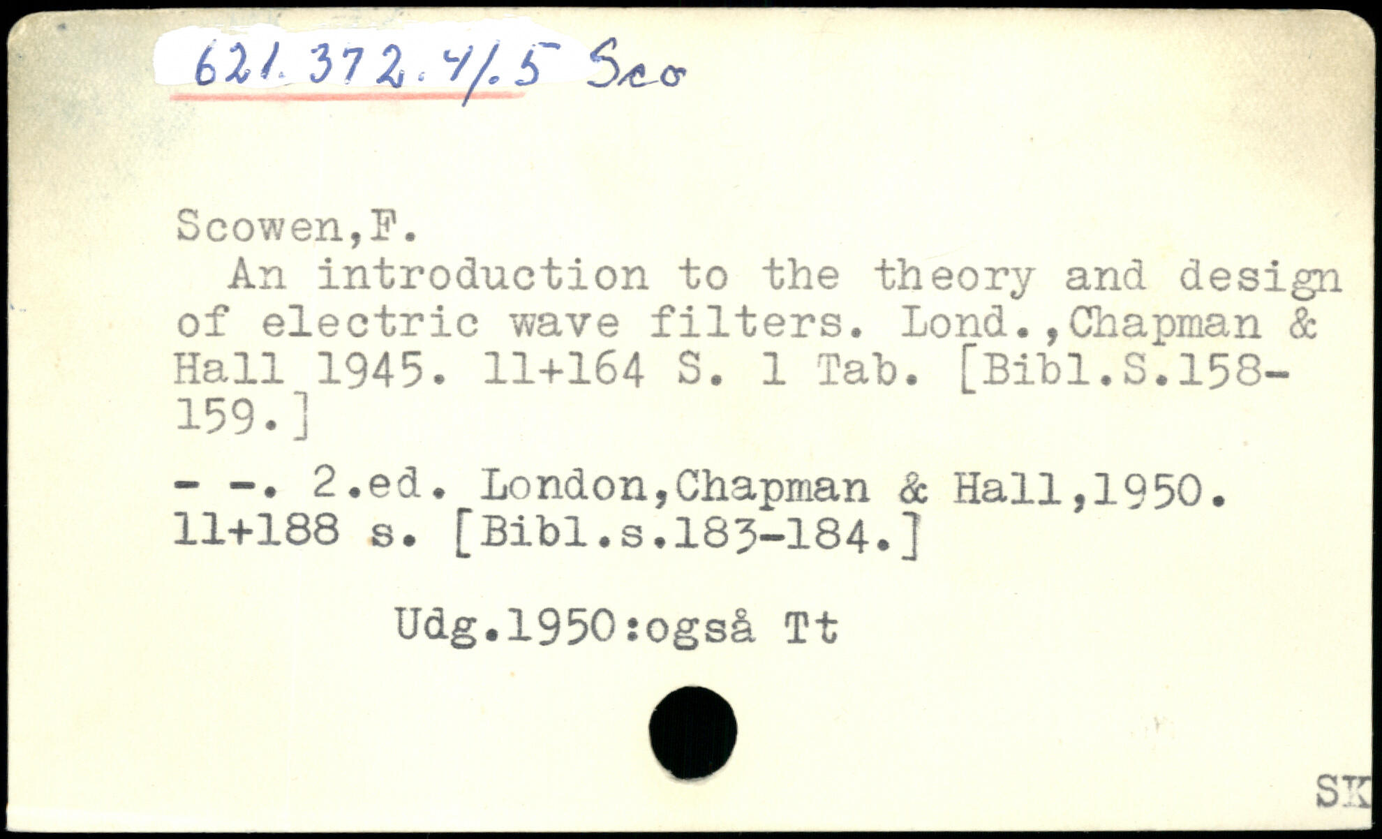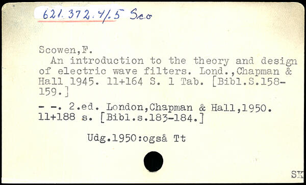 An introduction to the theory and design of electric wave filters. LondChapman & Hall 1945.