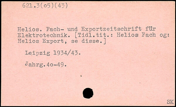 Helios. Fach- und Exportzeitschrift für Elektrotechnik. [lidl.tit.: Helios Fach og: Helios Export, se disse.]