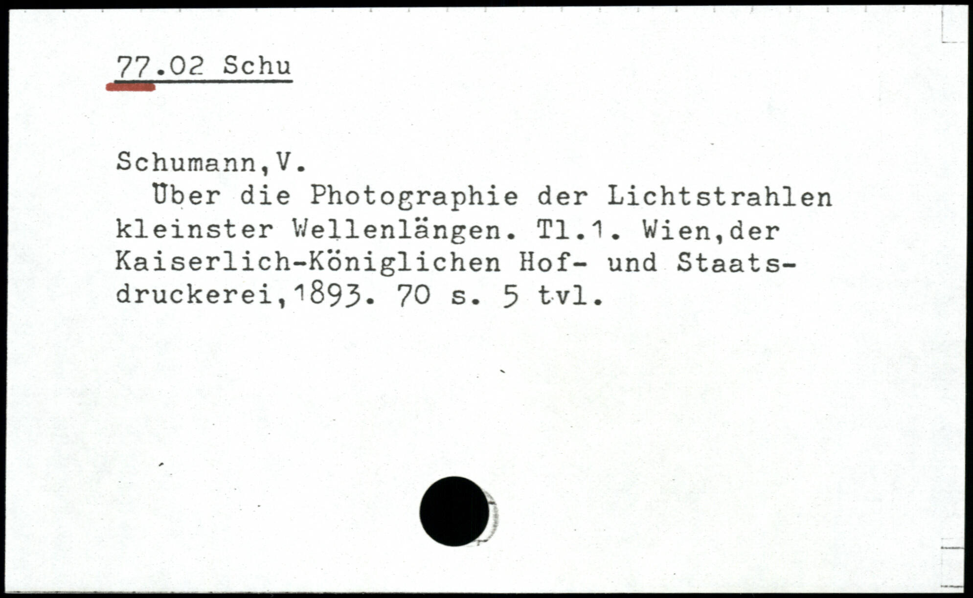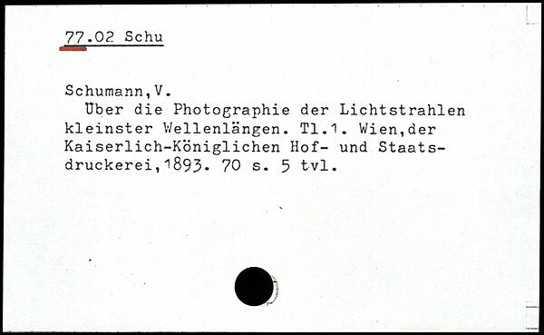 Uber die Photographie der Lichtstrahlen kleinster Wellenlängen. T1.1. Wien,der Kaiserlich-Königlichen Hof- und Staatsdruckerei ,.1893-