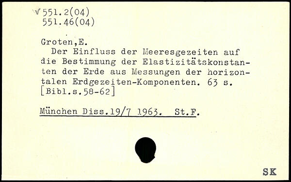 Der Einfluss der Meeresgezeiten auf die Bestimmung der Elastizitätskonstanten der Erde aus Messungen der horizontalen Erdgezeiten-Komponenten.