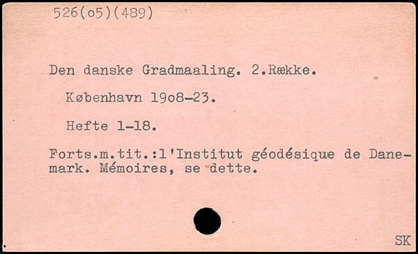 Den danske Gradmaaling. 2.Række, København 19o8-23. Hefte 1-18. Ports,m.tit.:1’Institut géodésique de Danemark. Mémoires, se dette.