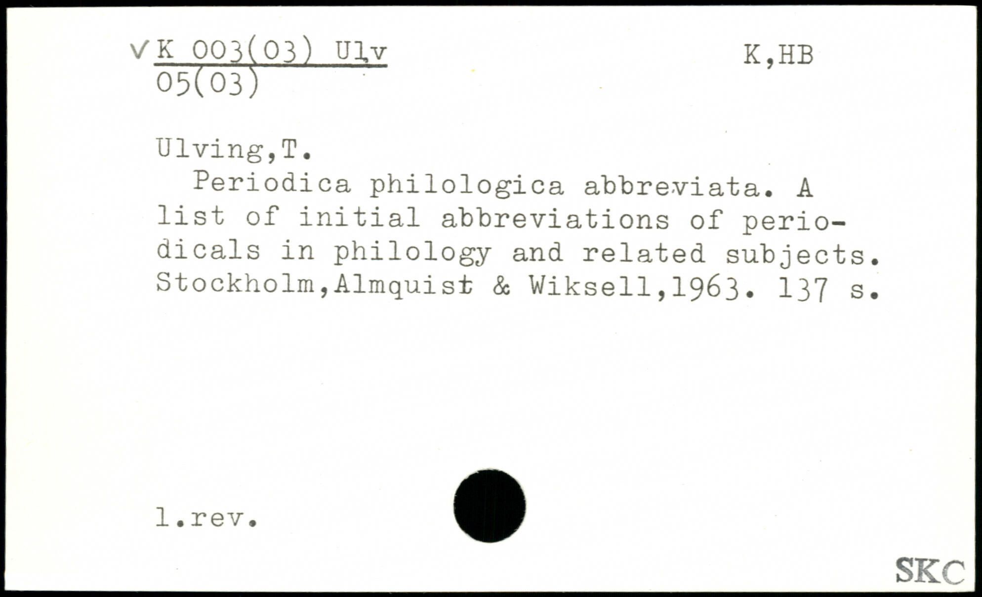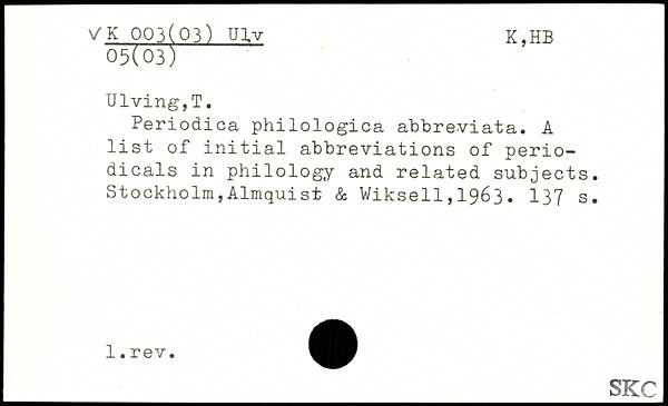 Periodica philologica abbre-viata. A list of initial abbreviations of periodicals in philology and related subjects.