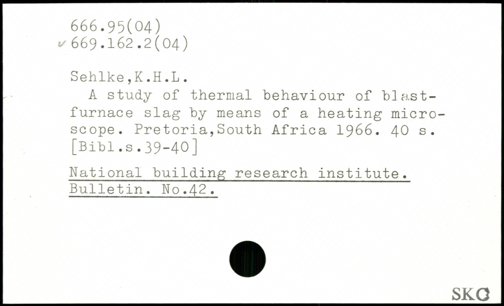 A study of thermal behaviour of blastfurnace slag by means of a heating microscope. Pretoria,South Africa 1966.