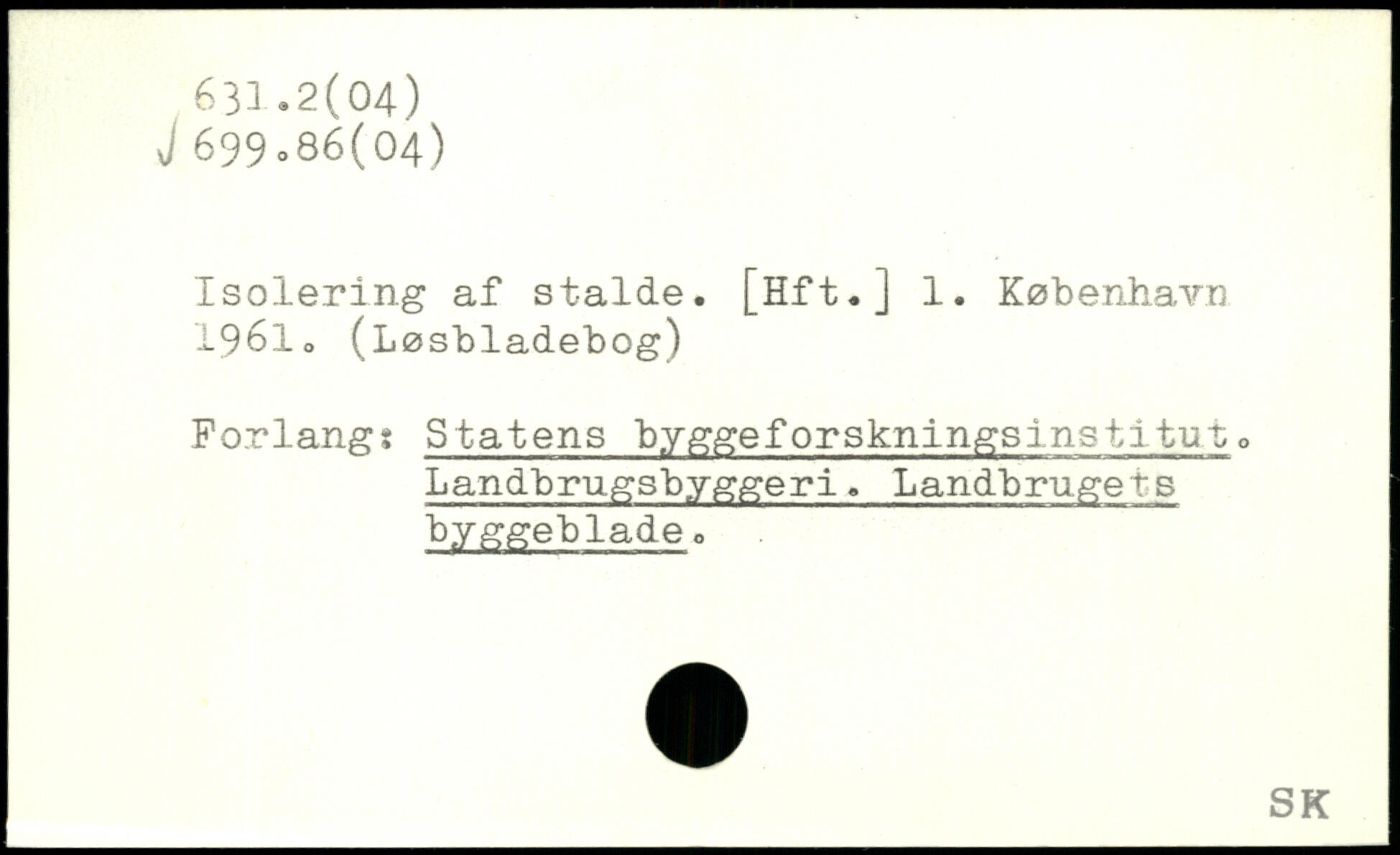Isolering af stalde. [Hft.] 1.