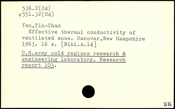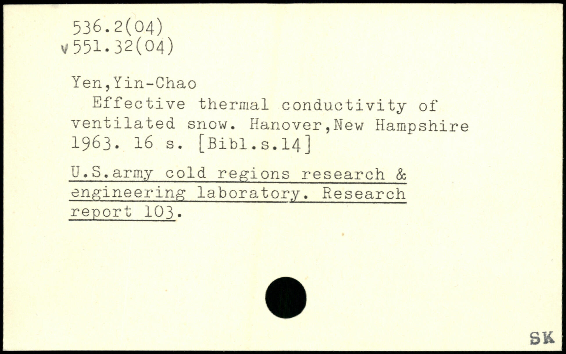 Effective thermal conductivity of ventilated snow. Hanover,New Hampshire 1963. l
