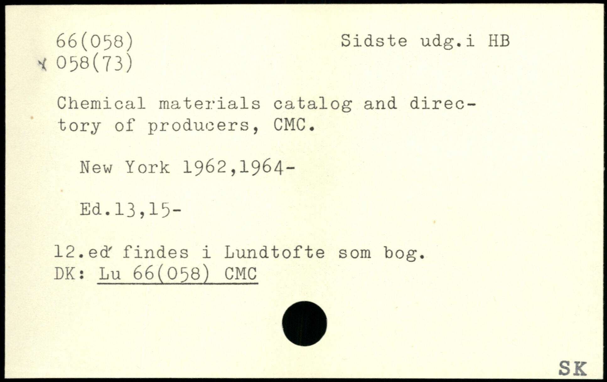 Chemical materials catalog and directory of producers, CMC.