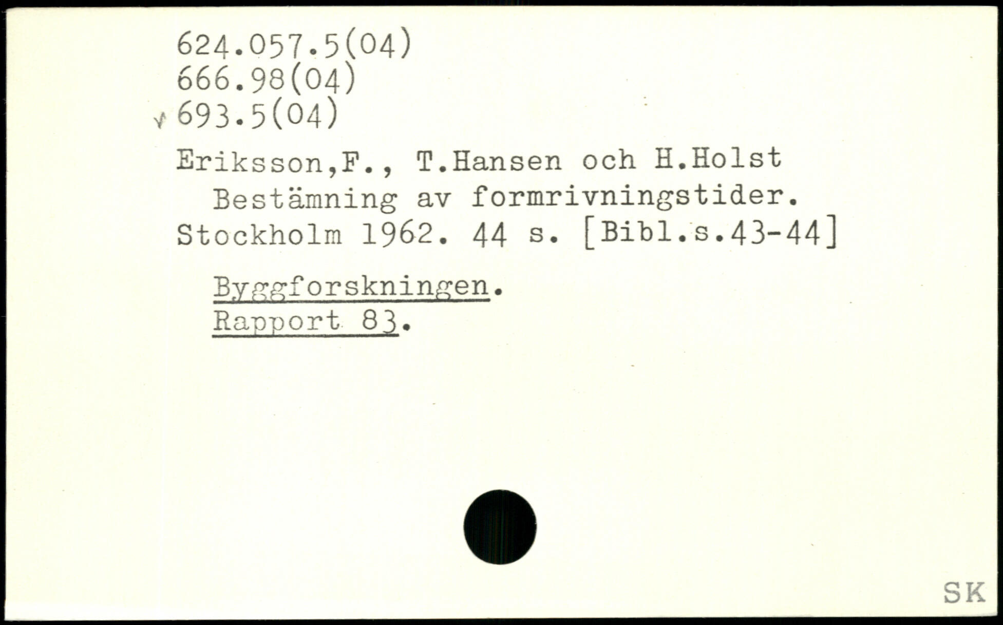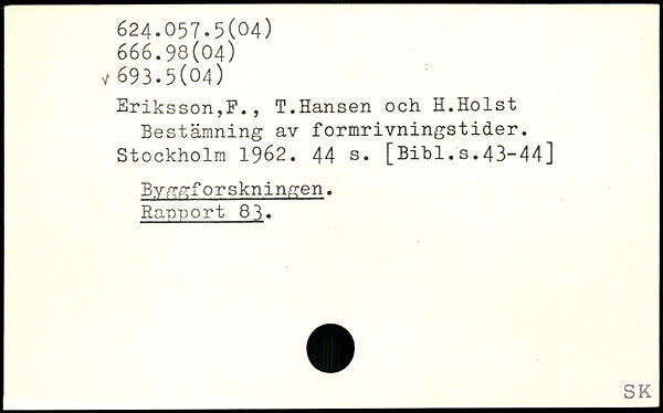 Eriksson,F., T.Hansen och H.Holst Bestämning av formrivningstider.