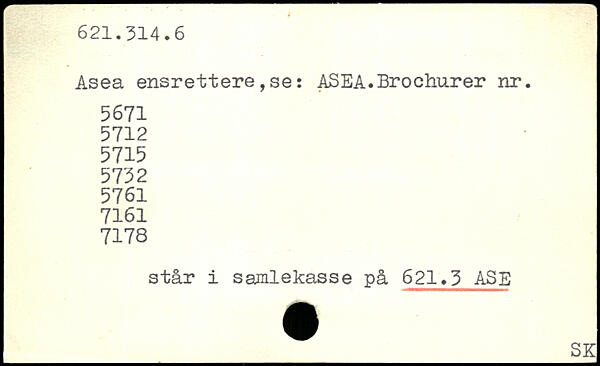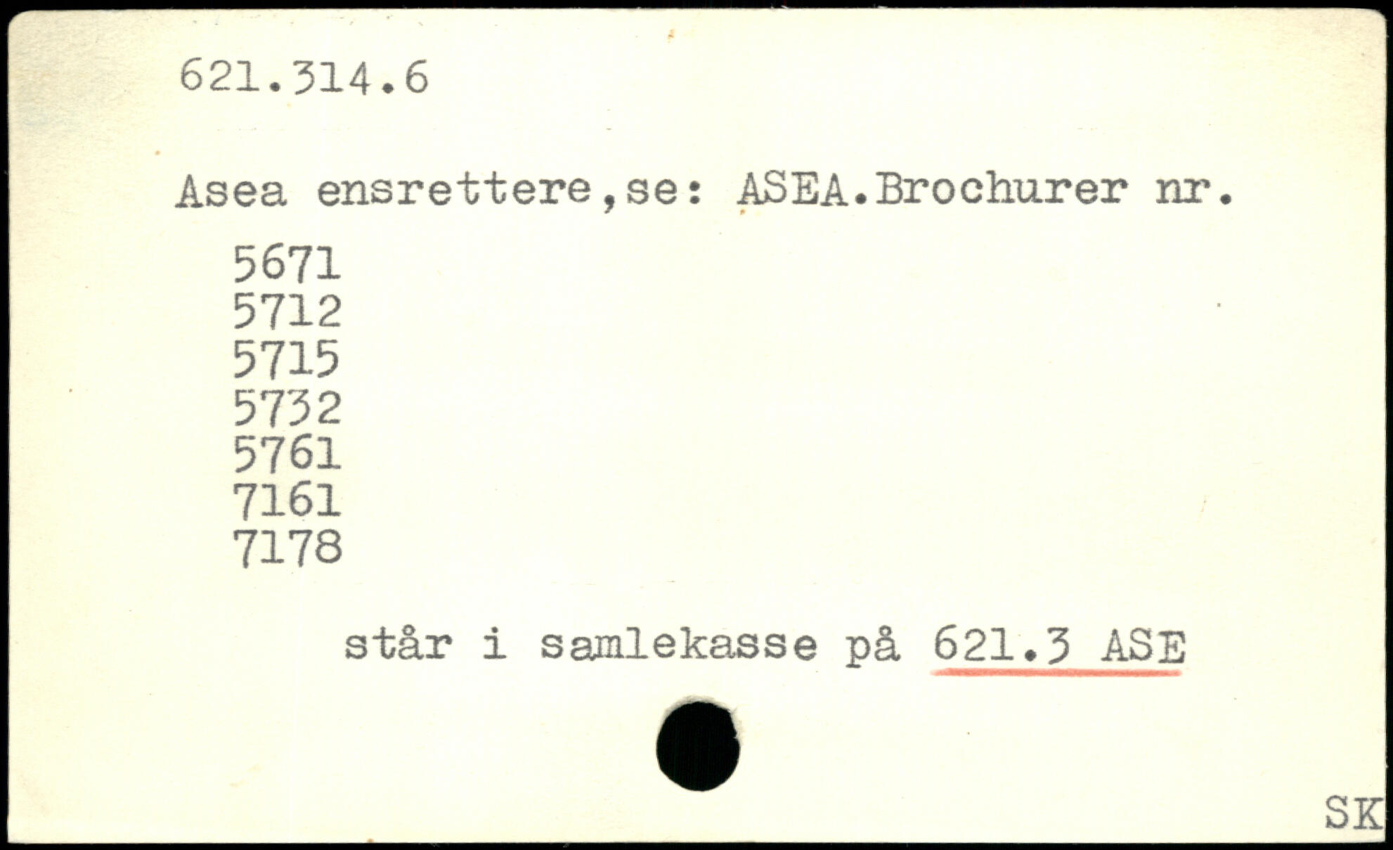 Asea ensrettere,se: ASEA.Brochurer nr. 5671 5712 5715 5732 5761 7161