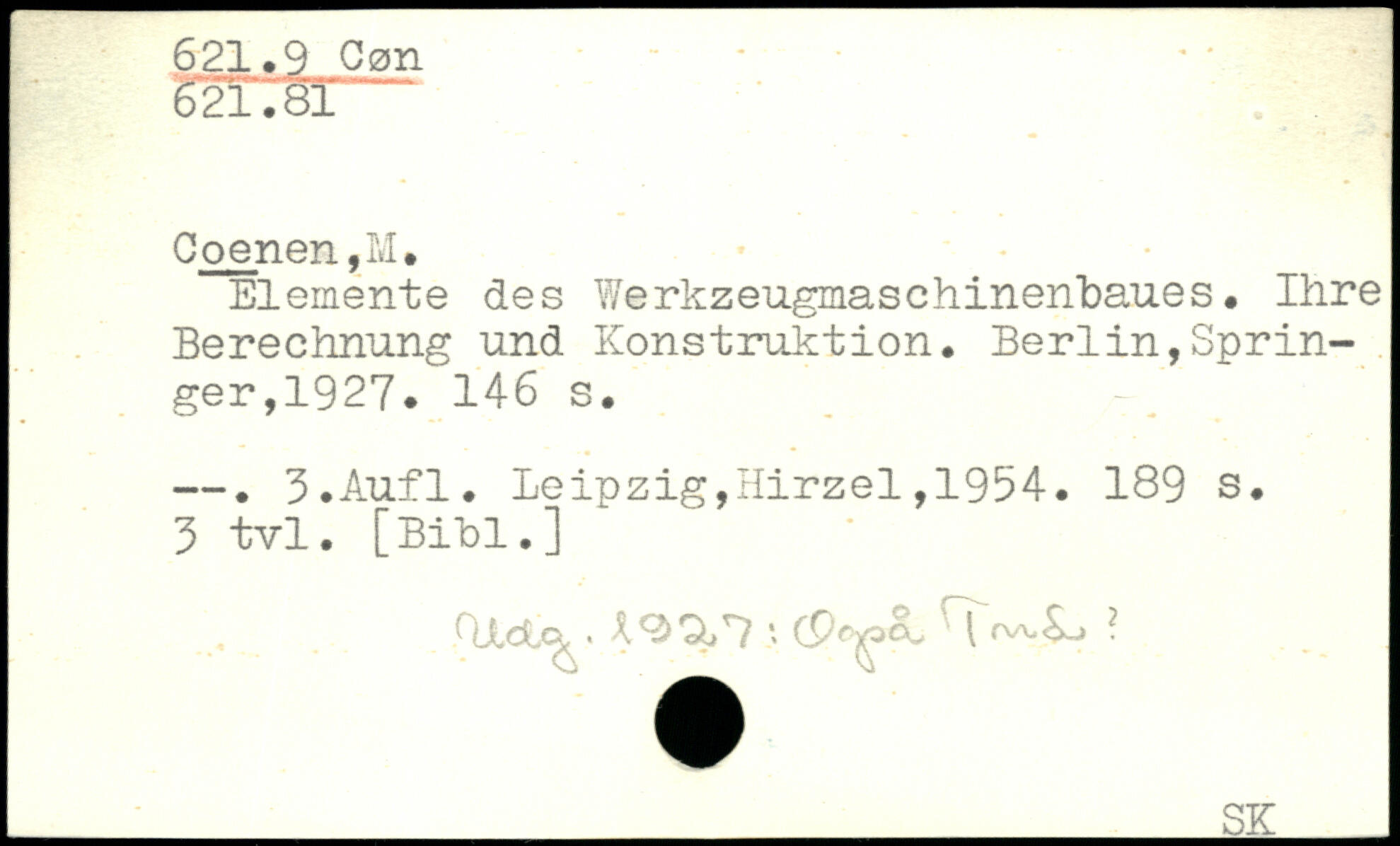 Elemente des Werkzeugmaschinenbaues. Ihre Berechnung und Konstruktion.