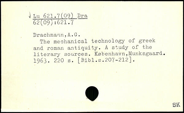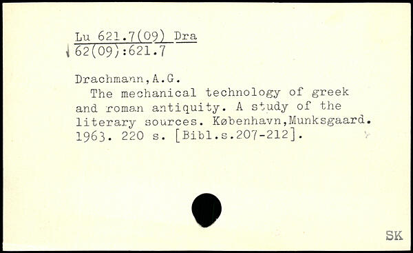 The mechanical technology of greek and roman antiquity. A study of the literary sources. København,Munksgaard. 1963.