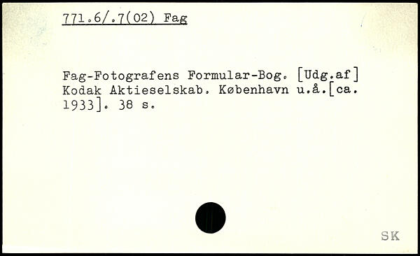 Fag-Fotograf ens Formular-Bo g., [Udg.af] Kodak Aktieselskab, København u.å.[ca. 1933].