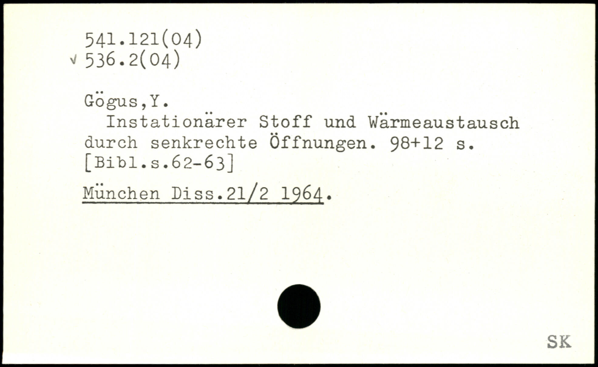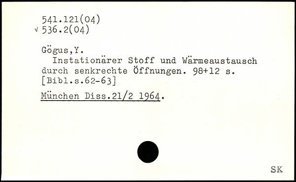 Instationarer Stoff und Wärmeaustausch durch senkrechte Öffnungen. JB